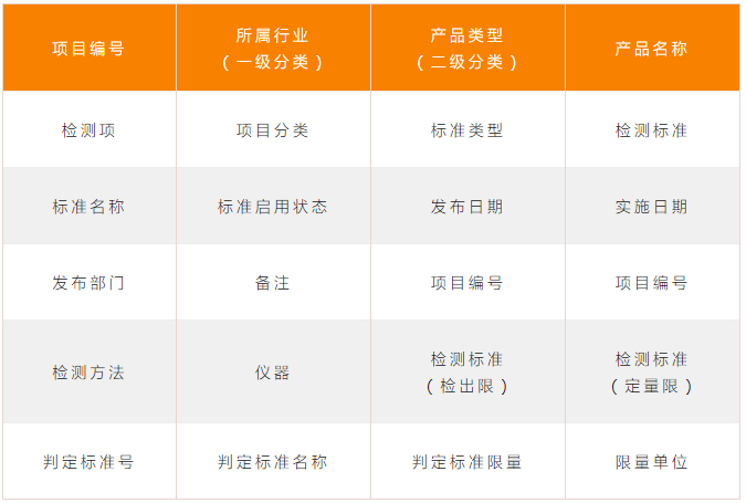 | 檢測項 | 項目分類 | 標準類型 | 檢測標準 |